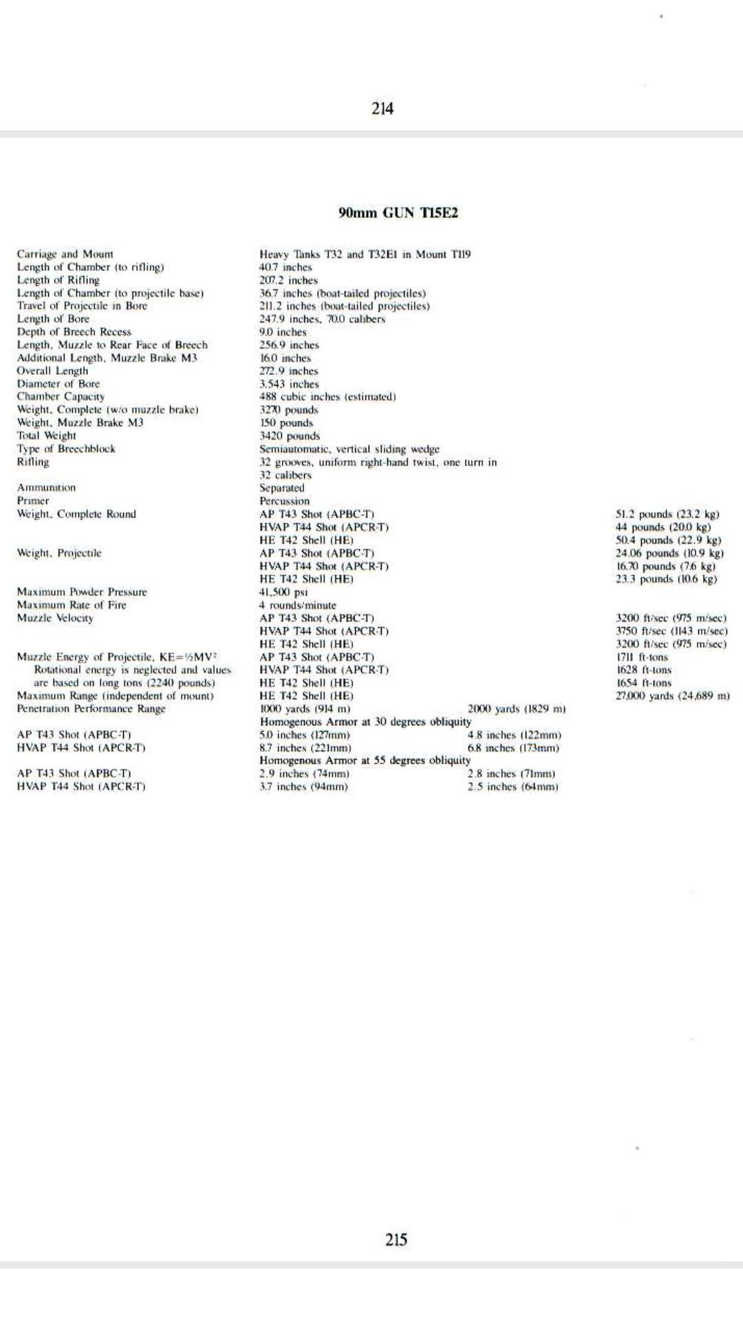 但T9的90炮給的90M41/M36并使用M318這種後期彈也才180左右的穿深 而穿深最高的90炮反而是45年T32用的那個實驗型90炮 我查的數據里給的結論是"後期型90炮膛壓達到長88水準" 同樣評價的還有20pdr 20pdr確實在遊戲里超過了200穿 但是90炮並沒有.............. 低了20mm以上 而且那門長90也是給後期型90炮做技術積累的 後期型90炮在提升膛壓和炮彈改進后超過長90完全可能
