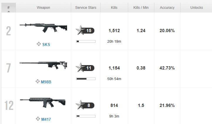 http://symthic.com/bf3-weapon-comparison?wep1=SKS&attc1=None&wep2=M417&attc2=Bipod+%28Deployed%29