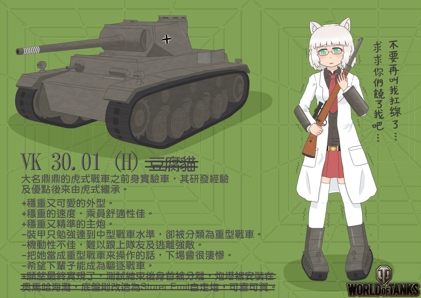 例如:把戰車世界經營的像"戰車百科全書"一樣,從一戰(去年的萬聖節活動表示:多砲塔機制成功)~現代(隔壁棚出M1啦),還有可以把戰車的各種型號&戰場有資料的亞種做出來(數位模型)