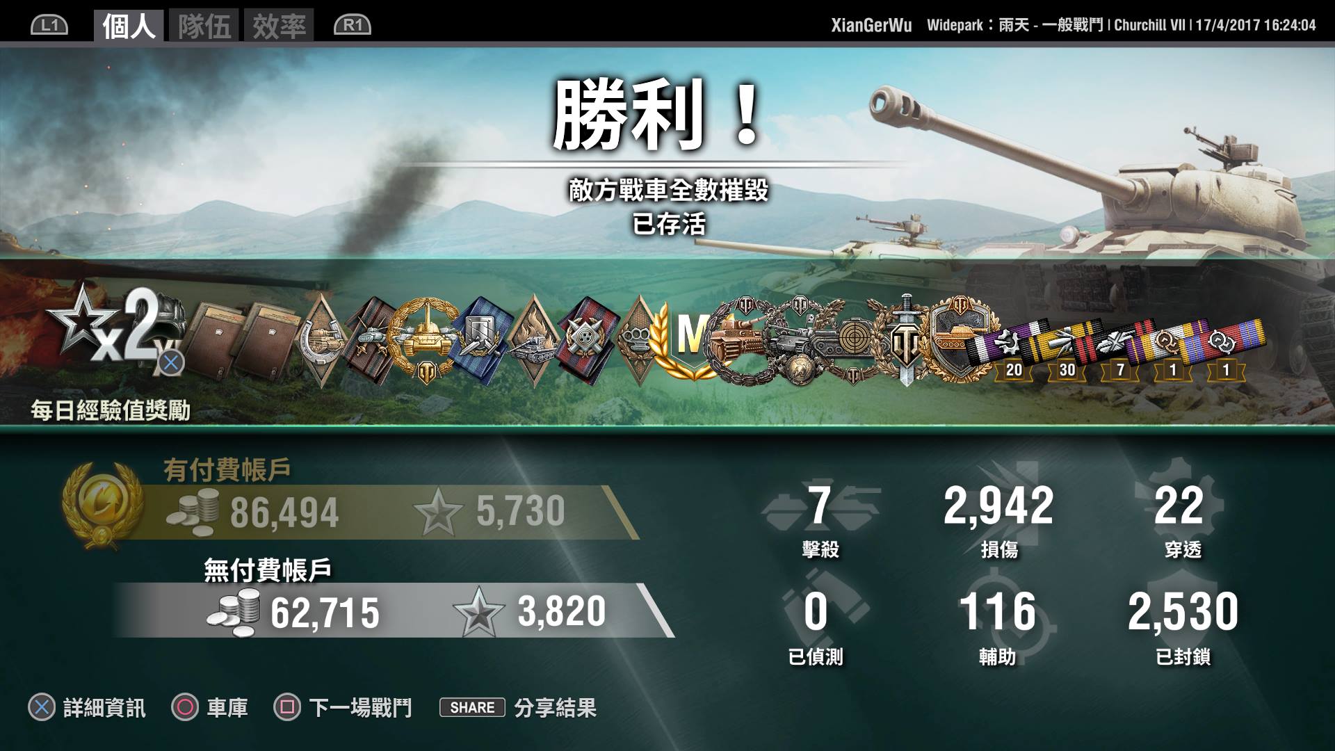 無名氏: 更幹的是還+3,占領戰, 對面全重坦,只好全場打醬油 (iAMvzkZM 17/04/24 13:34)