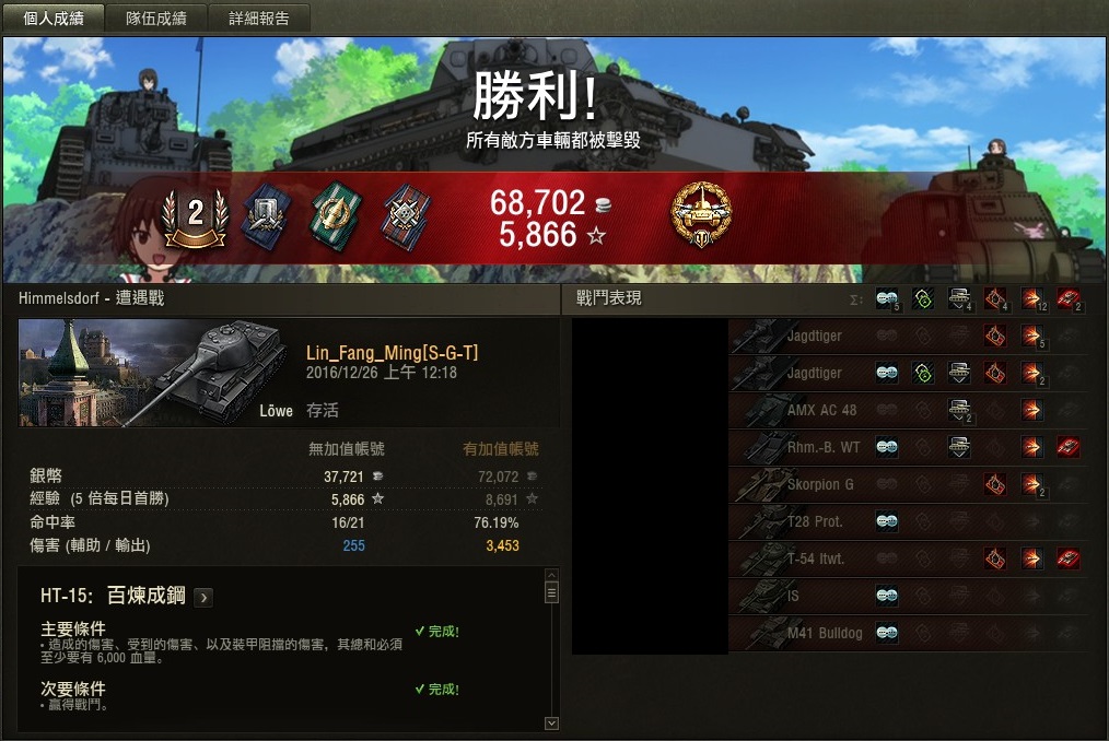 無名氏: (゚∀。)<別忘了嚇死IS-6的ELC (nTj2iHcs 16/12/21 22:08)
