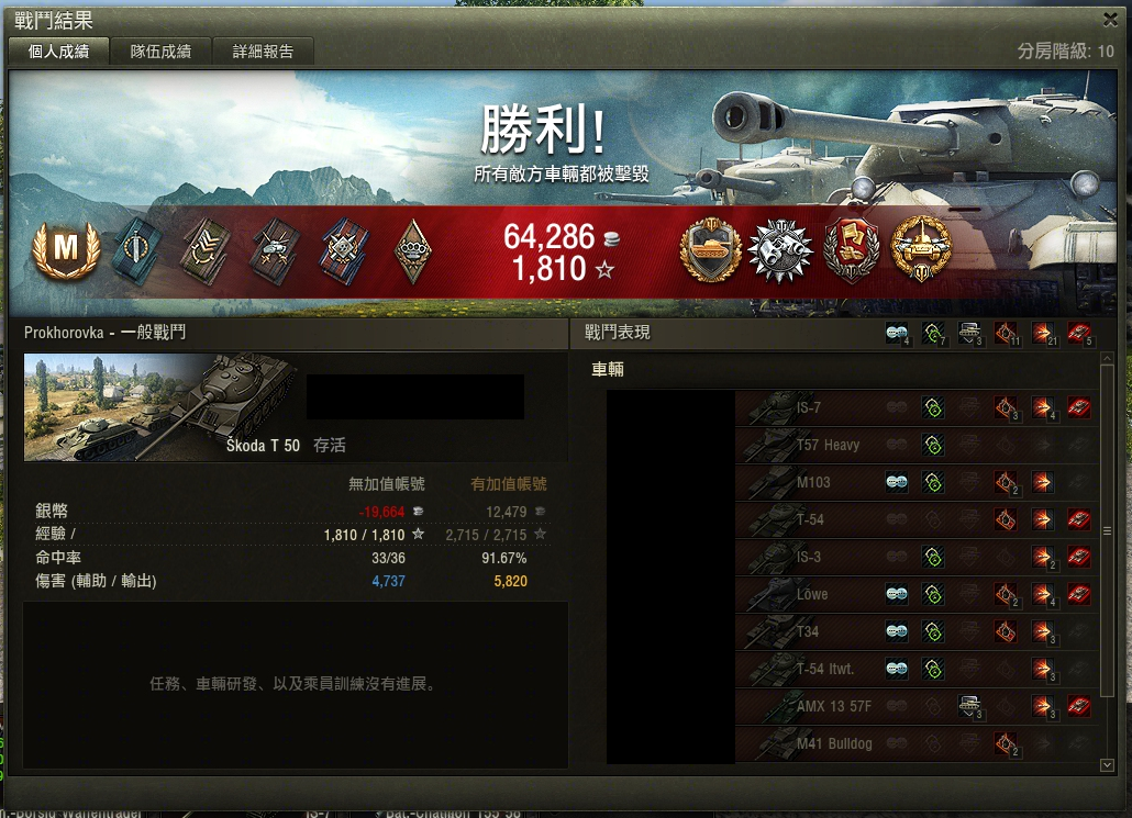 (附上自己的wn8跟虎I成績,還在努力洗掉以前的戳戳成績...