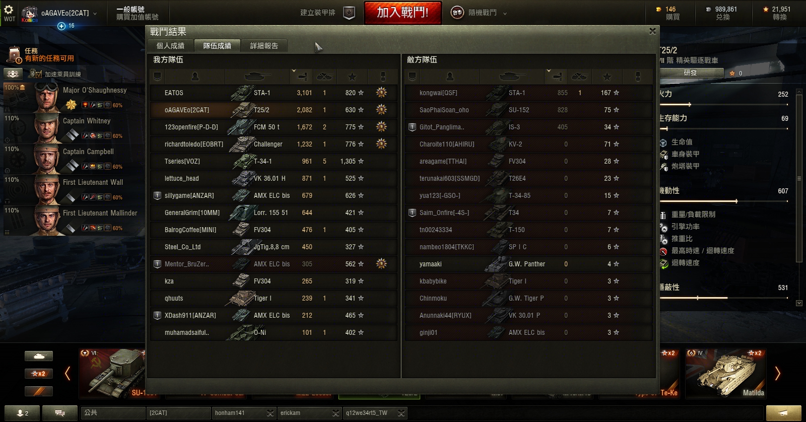 附圖是我在美服遇到的奇人,跟過他兩次。他兩次都是t62a且傷害四千左右、敗場收局。