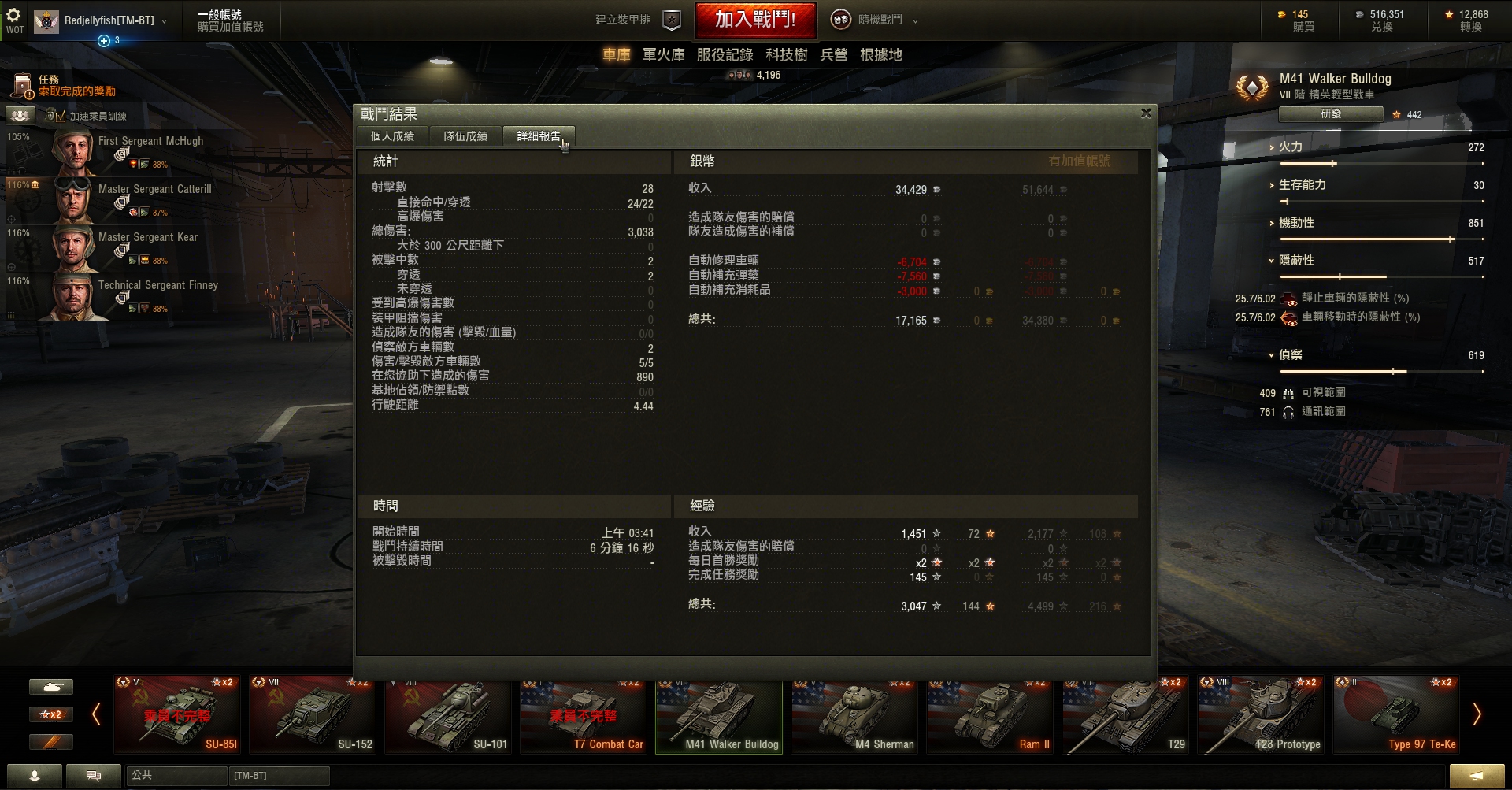 jbQL8S5U: 我說啊,你沒發現你的均傷幾乎只有HP的一半嗎?這點傷害WN8會那麼高不就證明這車神坑 (jbQL8S5U 16/07/26 14:13)