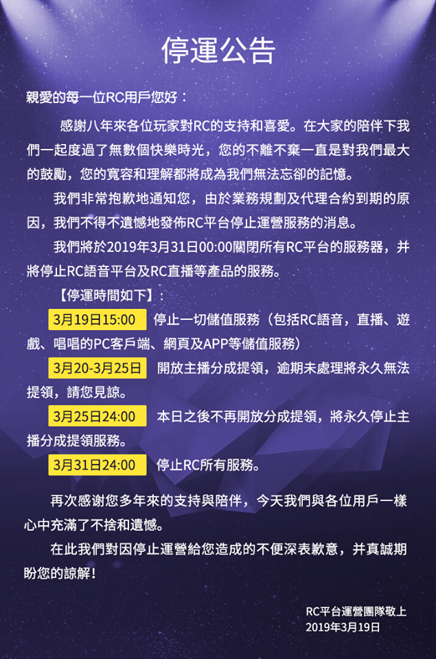 無名氏: 要停是因為被別的平台幹掉了還是技術賣給別的金主要重新上市? (9D5O7DcE 19/03/19 16:23)