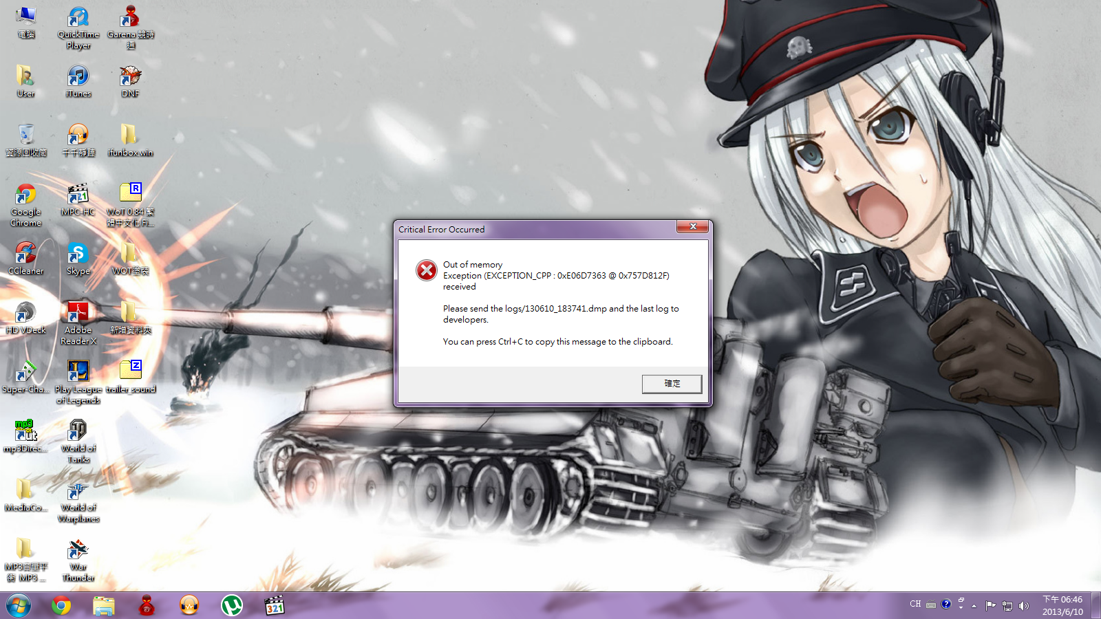 無名氏: (*´д`)<自己回一下,昨天更新檔再砍掉更新又OK了 (1NzeqroE 13/06/10 10:45)