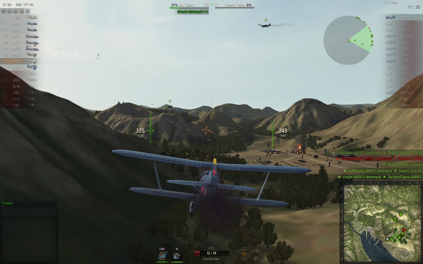 玩了二百場 狗戰方面還是很差 (比最初好了一點 現在至少打得中... 不會避人的傢伙) 所以在三階時就主打有強力炸彈的攻擊機/重戰鬥機 (德/蘇) 主要還是炸地面目標 丟完彈後就等墜機, 但某些情況下未丟完彈就身陷險境要自保, 但不會狗戰可以怎辦