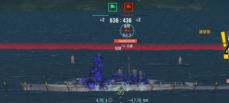 首先請看圖.然後無視一下BB身上的受傷特效.因為準星位置變了.順帶一提.這一輪炮彈擊中水線