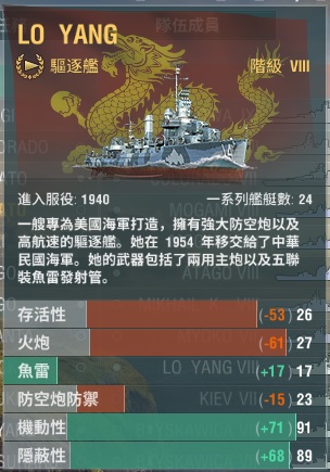 5. 洛陽適合在搶點時發揮作用,由於有水聽,敵我驅逐艦互開煙幕時有一定程度的優勢。不如說,其實那68節的6公里魚雷是專門用來對付敵方驅逐艦的。或許洛陽比較適合排名戰這種都是搶點地圖的戰鬥