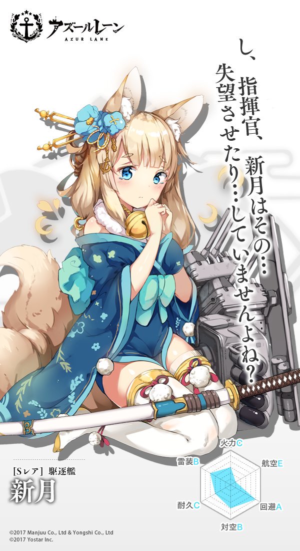另外最近推出的《碧藍航線》雪風號,其整體表現與當初的期待有落差,夕立號亦同;希望能隨著新月號的加入,多少能提振一下日本加值驅逐艦的戰力和買氣。如題,為配合四月份滿月之日,WG日本釋出了秋月級驅逐艦─新月號即將實裝的消息