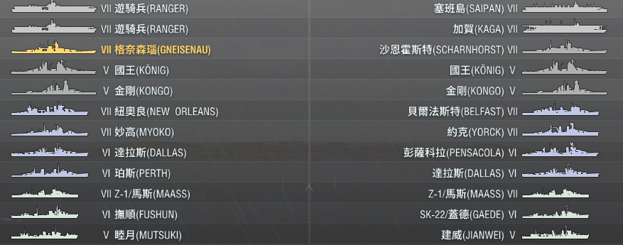 3.中低階主力艦加裝水偵彈射器,適用對象如下: