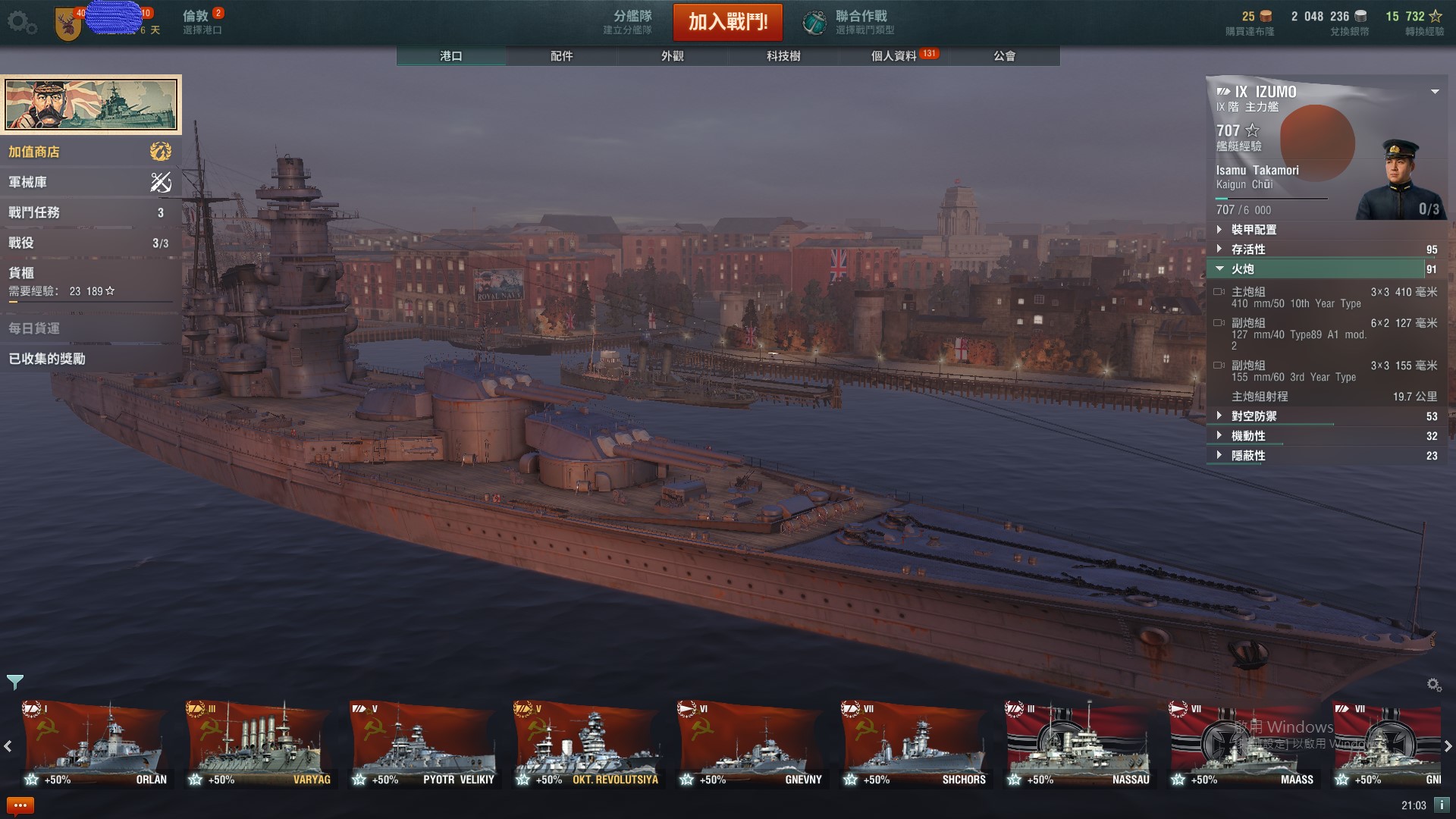 PS.最近的家機總算是推出蘇巡線了,米哈伊爾是任務獎賞船,無法買,然後蘇巡頂階是恰巴耶夫...有可能是家機生態不同,也有可能因為自己PC版是蘇巡起家的,知道這些船的特性,所以完全感受不到祖國威能。