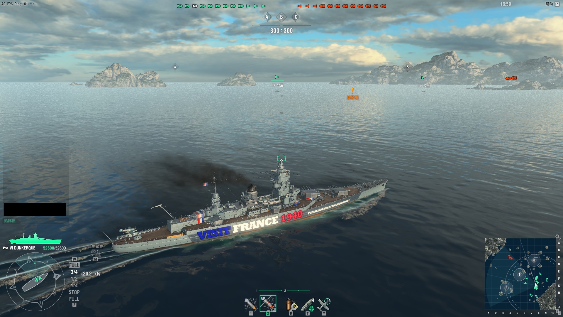你用加速補彈是5.4秒一輪 在決定玩CQC突襲時效果很好 抓對時機從側面殺出加上賣頭連大和都被你陰掉(AP一輪打腹部3~6千不等)