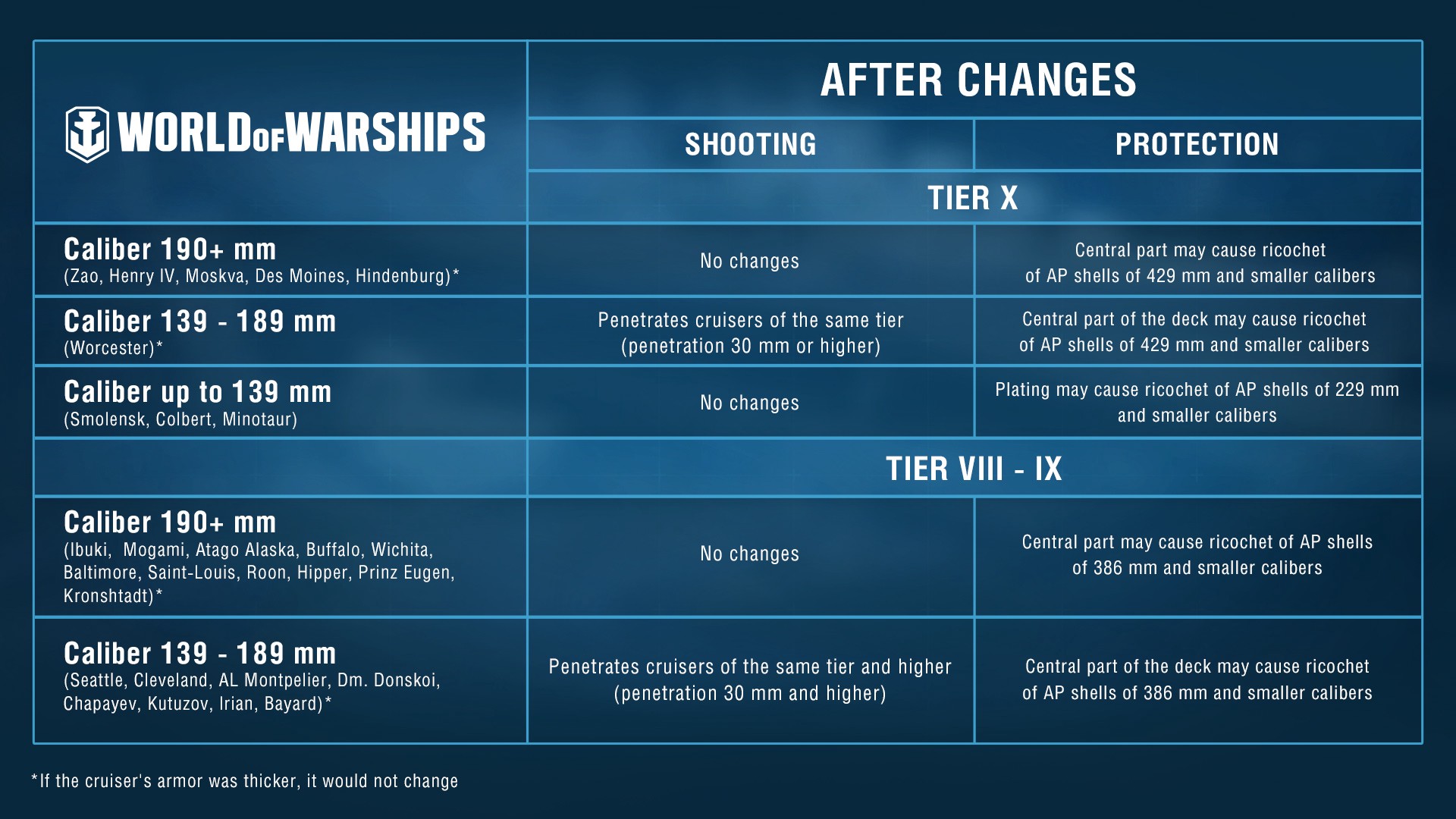 3.2.3.234mm高爆彈(柴郡、德雷克、歌利亞):傷害3350→3850、點火率21%→24%、穿深1/6→1/4(38mm→58mm)