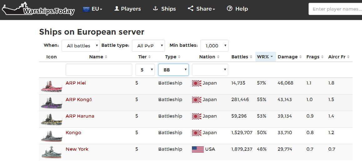 在warships.today已經找不到北上的資料了